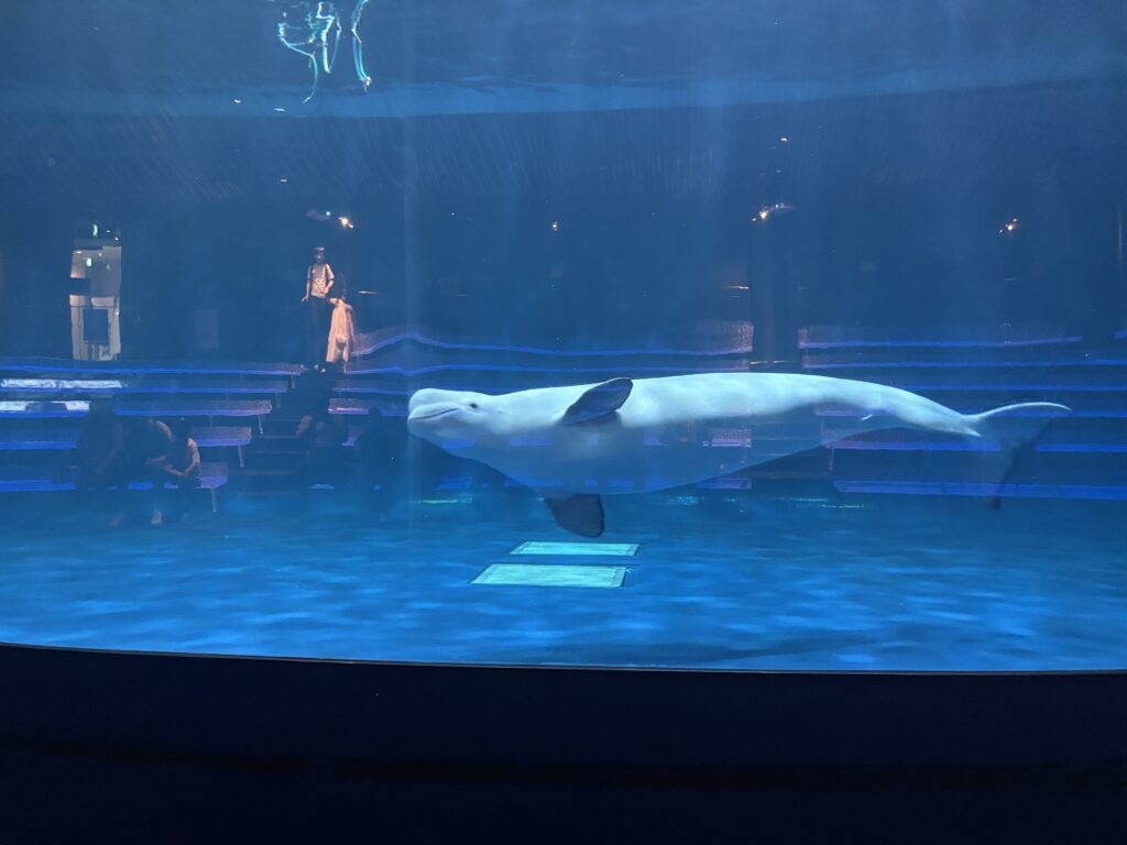 この水族館の名物は、「シロイルカ」のショーです。