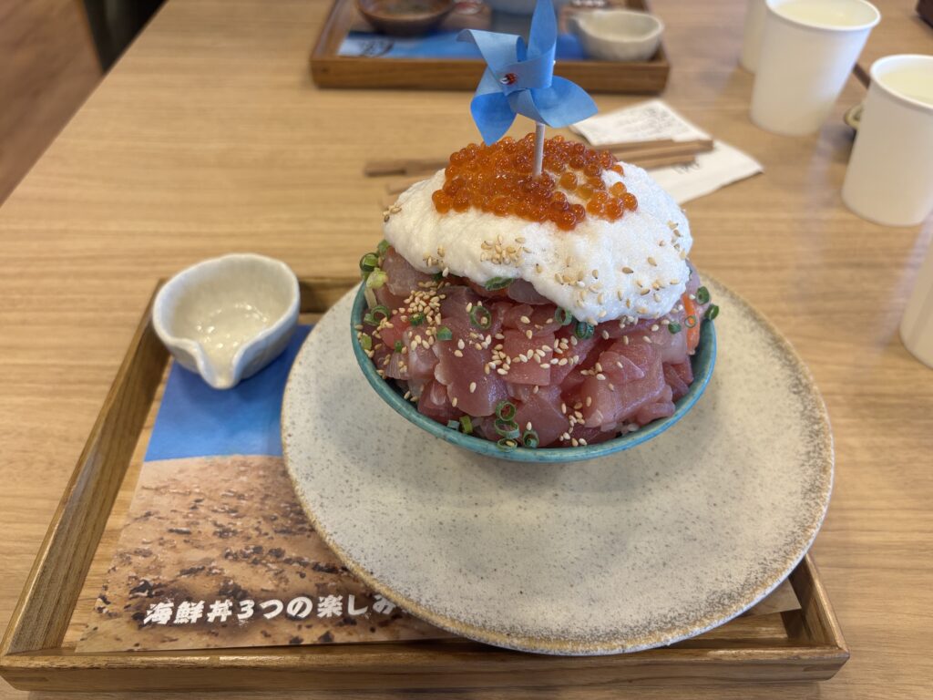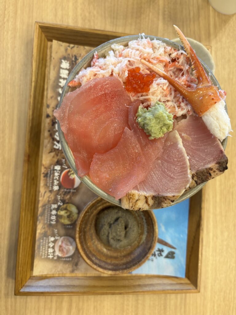 息子2人は、鳥取に来たこともあり「蟹の定食」を食していました。私は、とろろが有名ということで「とろろ海鮮丼」そして、妻は「蟹の海鮮丼」を食べてみました。