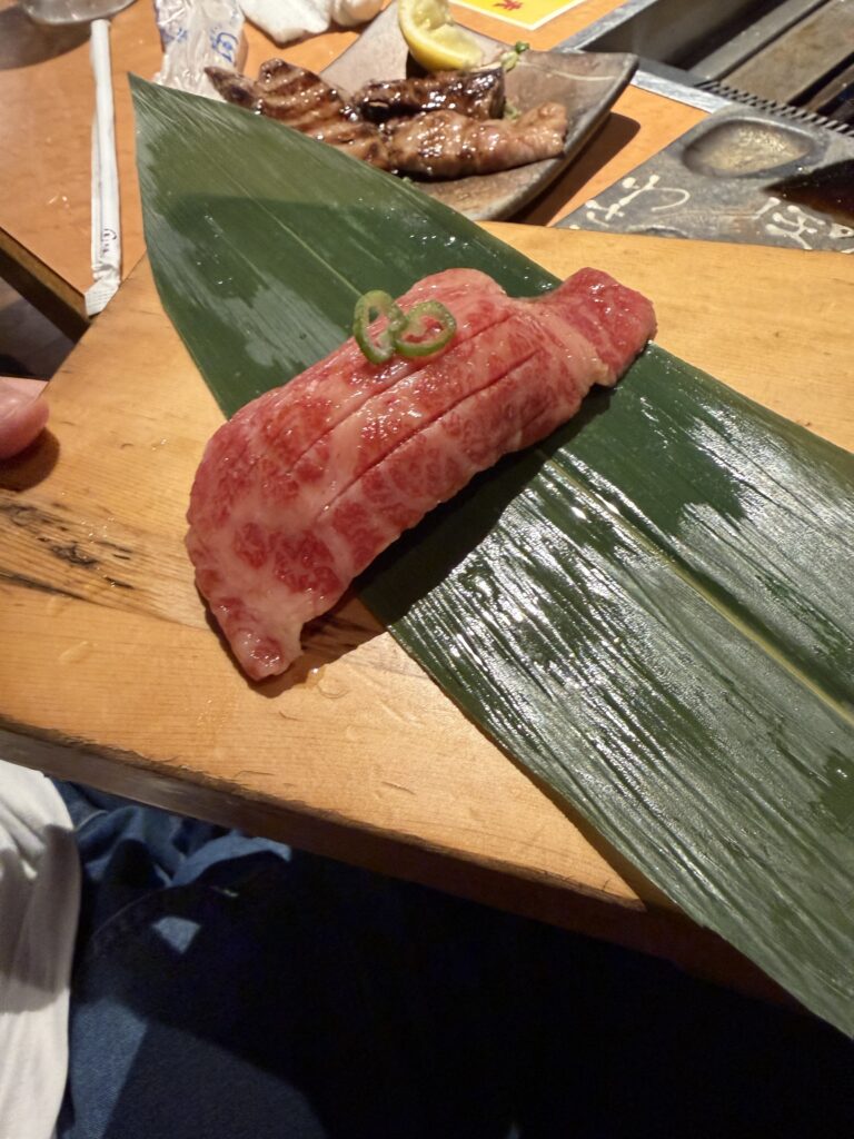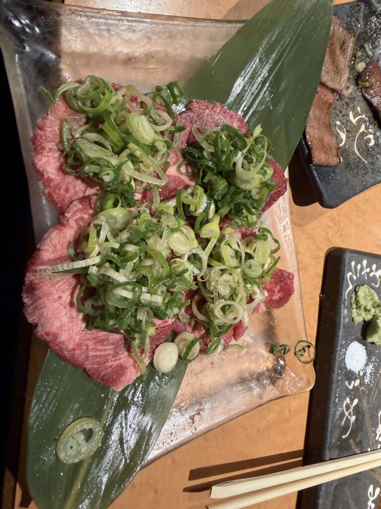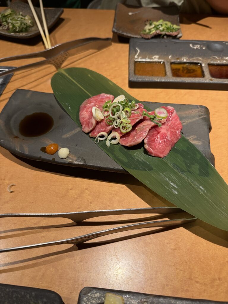 左から、肉のたたき、ねぎ塩タン、肉握りです。