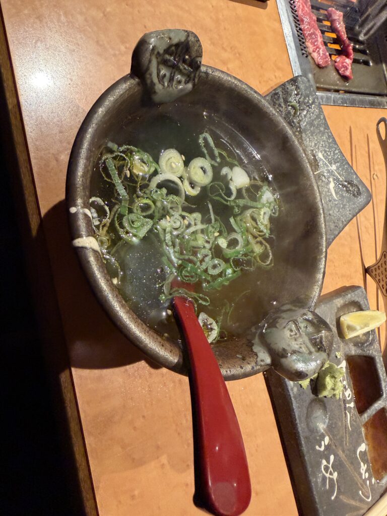 左から、わかめスープ、特選カルビ、特選ロース、はらみ、こころになります。