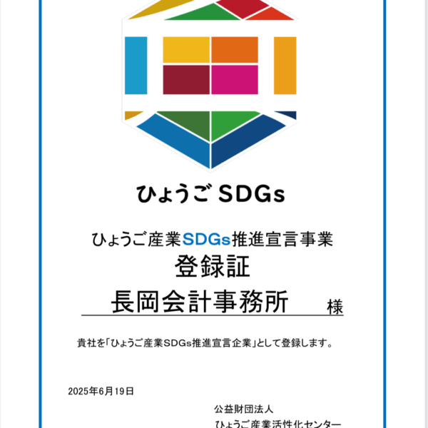 こんにちは!税理士の長岡です。 2025年6月19日、長岡会計事務所は「ひょうご産業SDGs推進宣言企業」として正式に登録されました。 これは単なる称号ではありません。私たちは、経営に「社会的意義」を組み込む時代の到来を…
